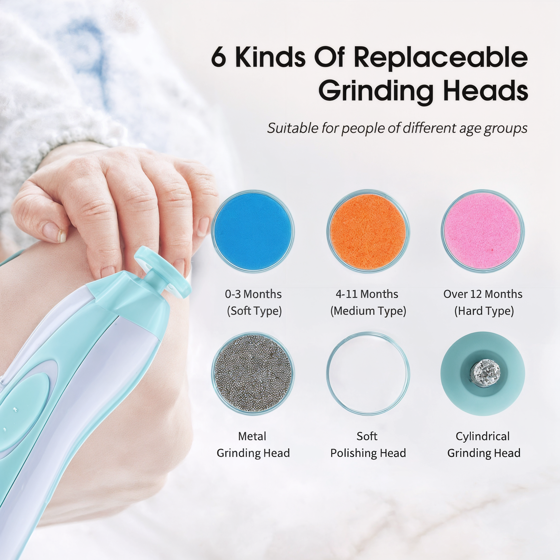 The set comes with multiple filing heads for different age groups, ensuring safe and effective trimming as your baby grows.